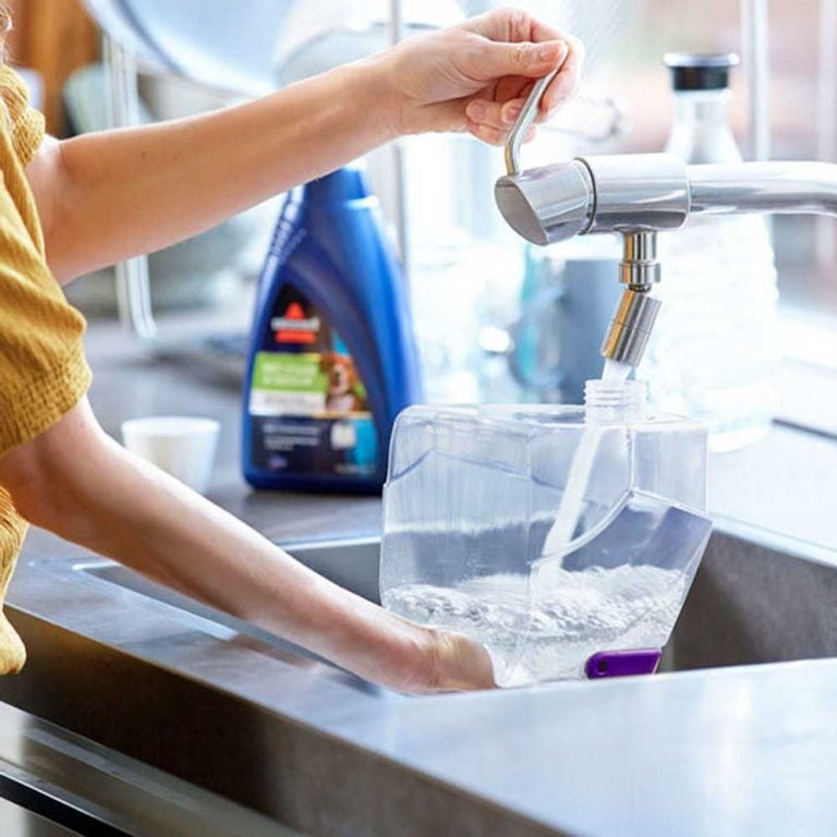 The SpotClean Pet Pro uses water, BISSELL detergent, and handheld cleaning tools with powerful suction to remove surface dirt and set-in stains.