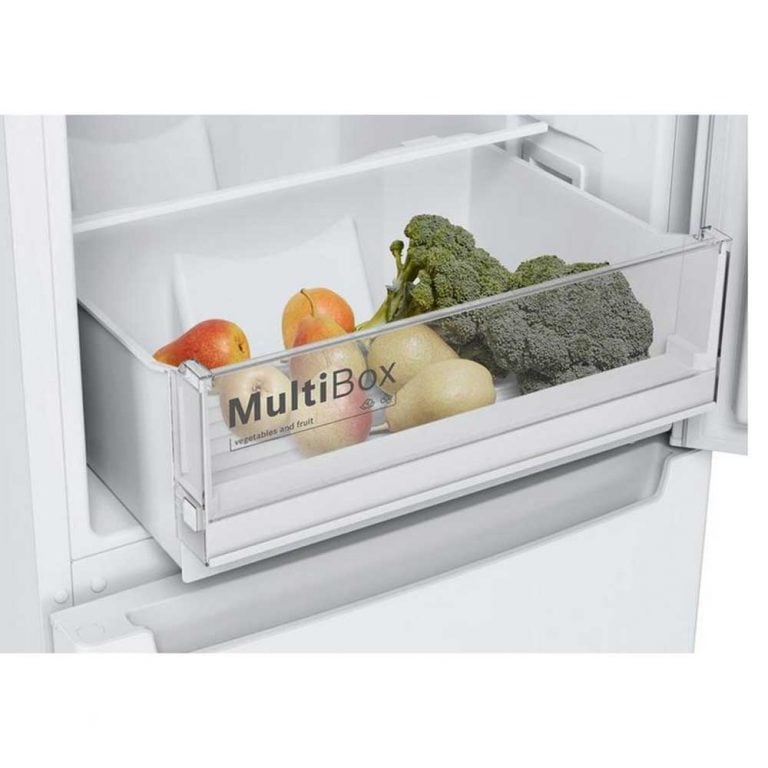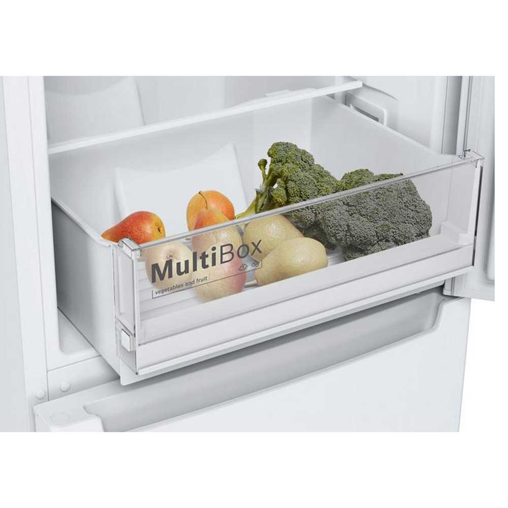 This Bosch fridge freezer has a range of innovative features to make your life easier. With the Multi Airflow System, air is distributed evenly throughout your appliance’s compartments, helping food stay fresher and tastier for longer. You’ll find a MultiBox drawer for storing your chilled items, which provides all the space you need for foods galore.
