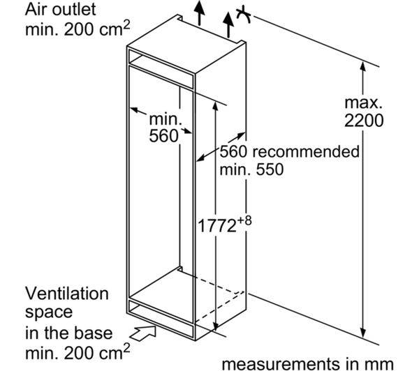 Recess dimensions 1772 x 558 x 545 mm (H x W x D)