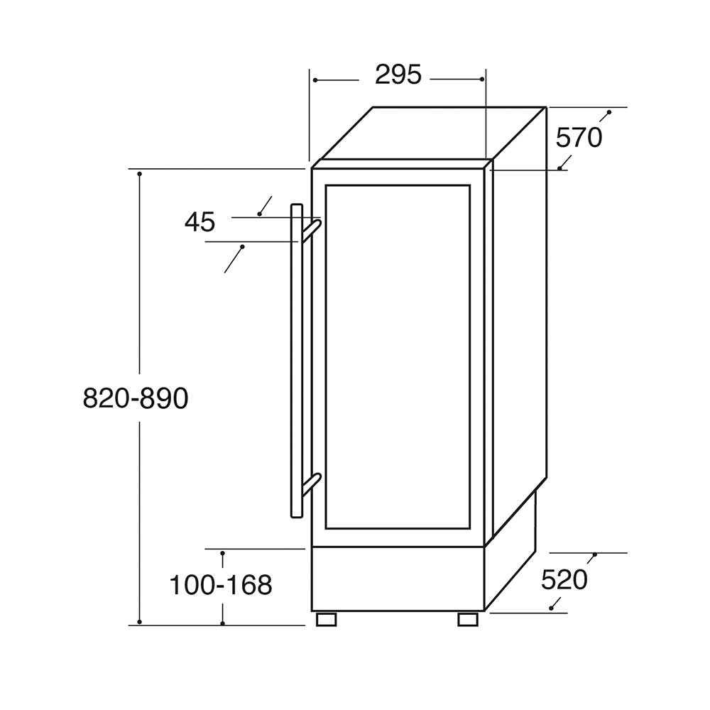 The FWC304BL is a freestanding, under counter, 30cm wine cooler with great capability within a stylish exterior. Features include: wooden slide out shelves with the capacity to hold 20 bottles, electronic temperature control, a UV protected smoked toughened glass door, a humidifier and a temperature alarm to maintain optimum conditions for the safe storage of your wine; this is the perfect addition to any functional kitchen design. Door reversal service is available at checkout.