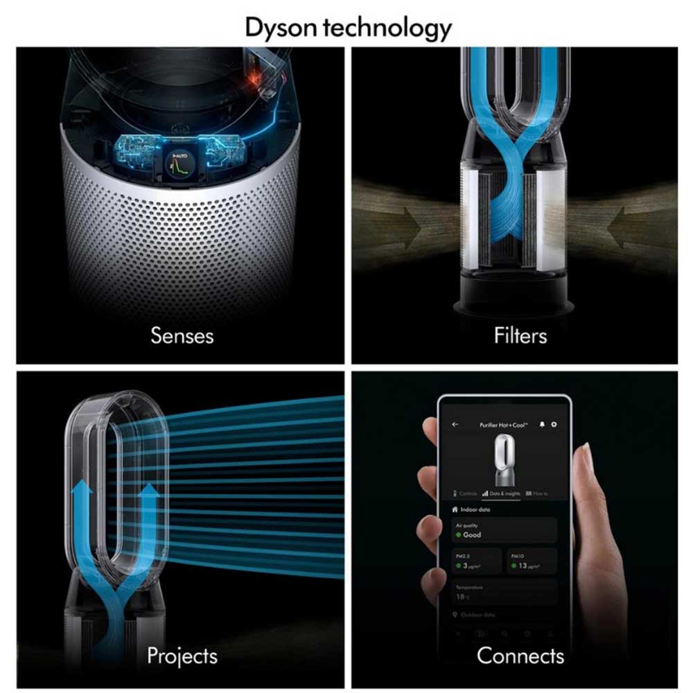 Features | Purifies all year round Captures gases and 99.9% of pollutants for a healthier home Connects to MyDsyon™ app Projects over 290 litres per second of smooth, powerful airflow |