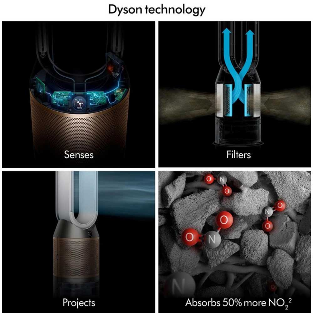 | Features | Advanced air purification automatically captures 50% more NO₂ Purifies & Hygienically Humidifies the whole room Personalised air quality reports via the MyDyson™ app Removes odours and gases and continuously destroys formaldehyde |
