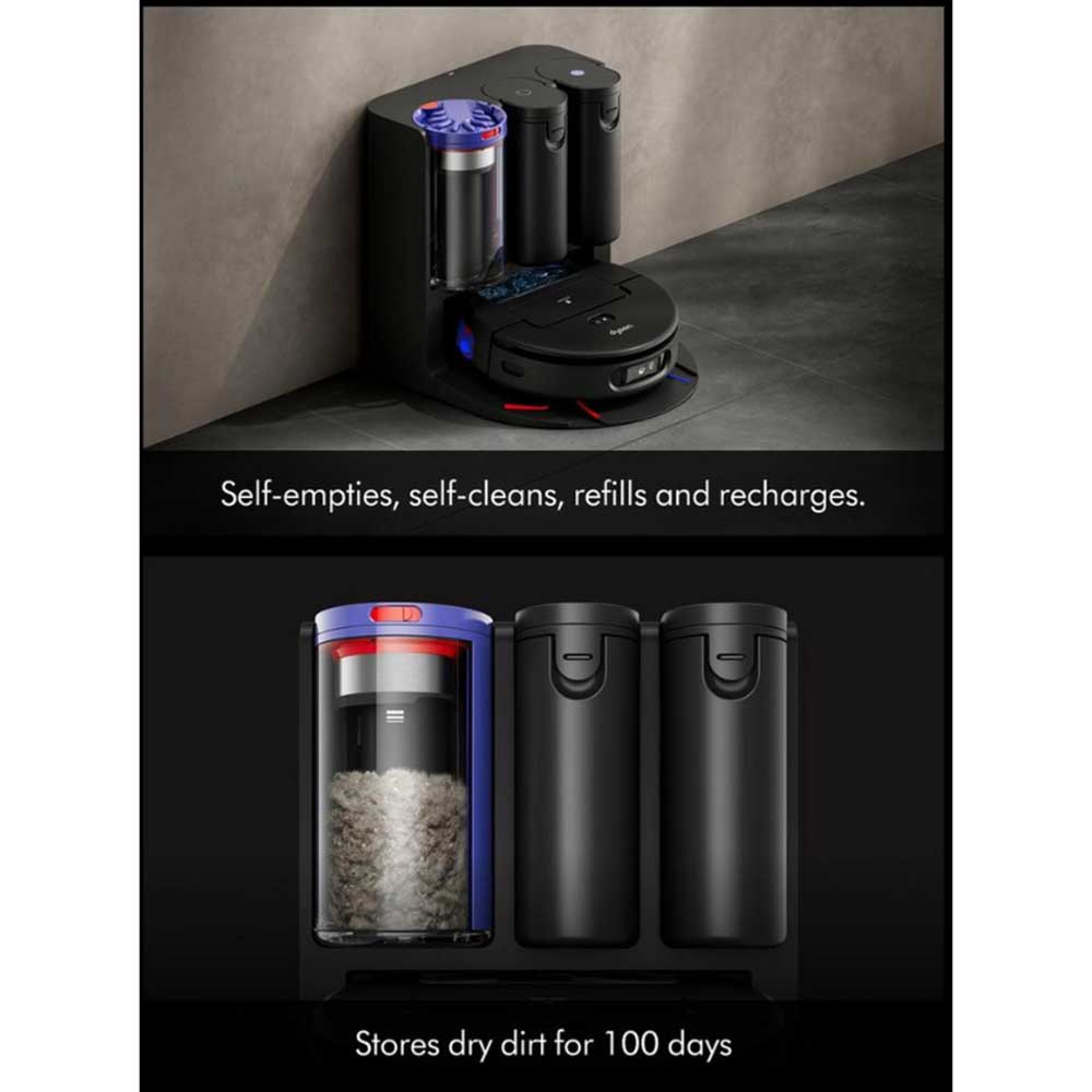 - Hygienic self-emptying dock stores dirt for up to 100 days