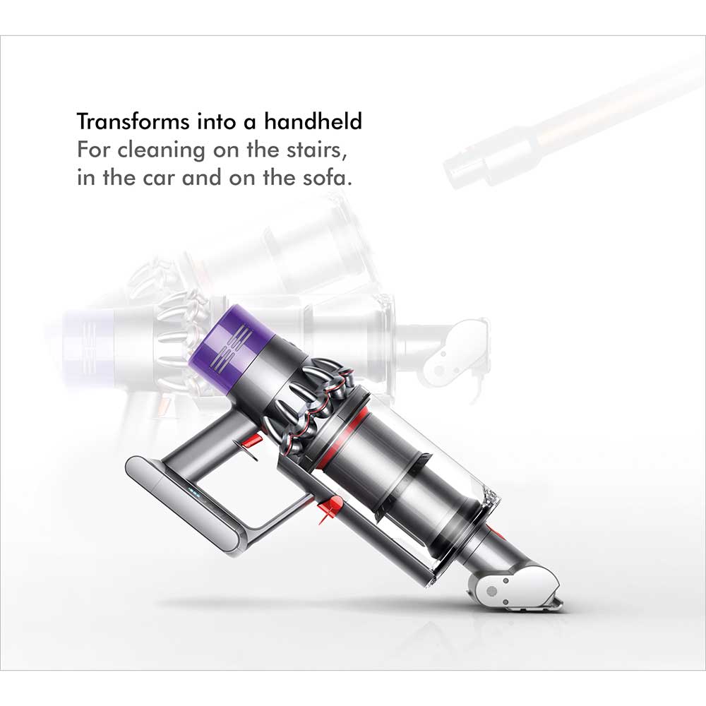 Upto 60 minutes powerful fade-free suction Direct Drive technology deep cleans carpets and hard floors Bigger bin for big cleans Changes to handheld in one click Advanced cyclone technology for no loss of suction Certified asthma and allergy friendly Three power modes to suit any task Hygienic point-and-shoot bin emptying Wall mounted docking station for grab-and-go storage Separate charger so you can plug it in anywhere