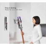 Drop-in docking The Dyson Cyclone V10™ vacuum drops into the wall-mounted dock, to recharge it and tidily store tools. So it’s ready to grab and go.