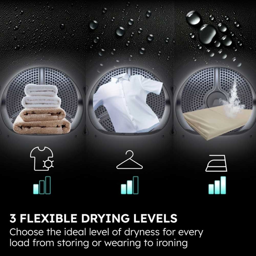 This appliance is perfect for busy households seeking hassle-free and reliable laundry solutions. With its Anti-Crease option, you can put your clothes directly into your wardrobe, free from wrinkles. The I-Time feature allows you to personalise the drying duration, adapting it to your specific requirements. Whether you’re managing a family’s laundry or simply need high-performance drying for your personal items, this tumble dryer is designed to meet diverse needs.