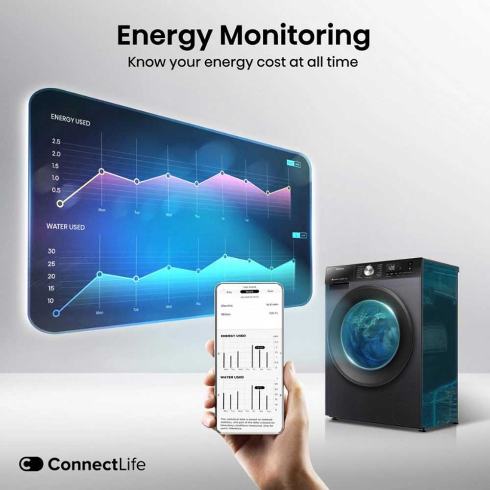 With smart functionality at its core, the washing machine integrates Energy Monitoring through the ConnectLife app, enabling you to control and manage your washing and drying routines remotely. This feature allows for smarter, more economical use of your machine, freeing you from daily repetitive tasks and supporting an energy-conscious lifestyle. The Hisense WF3S9043BW3 is an excellent choice for those seeking a reliable, efficient, and modern appliance to simplify daily laundry chores.