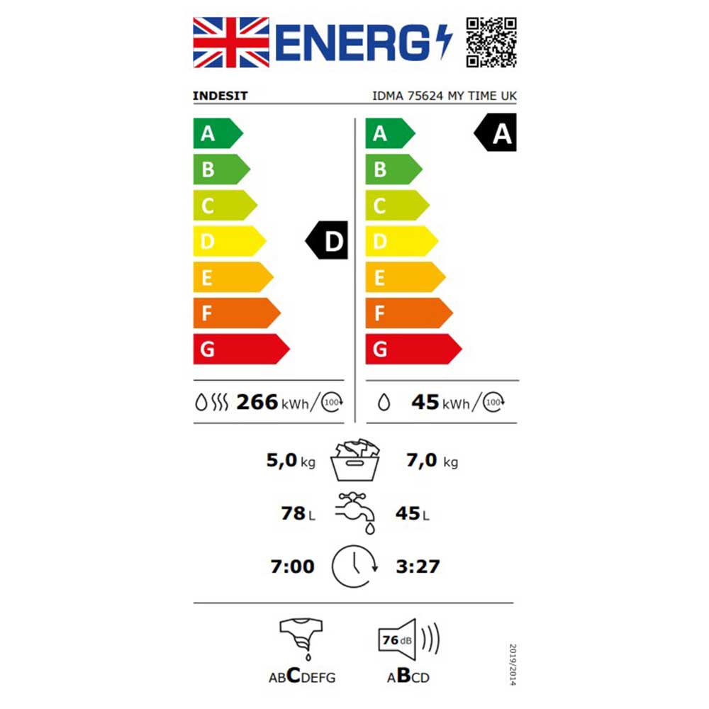 Certified with an A Energy Class rating, this appliance is environmentally friendly and economical, reducing your carbon footprint and lowering your energy bills. With its sleek white design, the Indesit IDMA75624MYTIME is not just functional but also an attractive addition to any home. Invest in this washer dryer today for a seamless laundry experience that combines speed, efficiency, and sustainability.