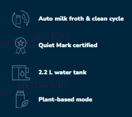 Automatically steam or froth the exact amount of milk needed for a deliciously balanced espresso drink. Simply fill up the included milk container with your chosen milk. If you’re vegan or like to try non-dairy, then plant-based drink mode allows you to use alternatives like almond, oat or soy drinks. These plant-based options are specially accommodated for in this fully automatic espresso machine.