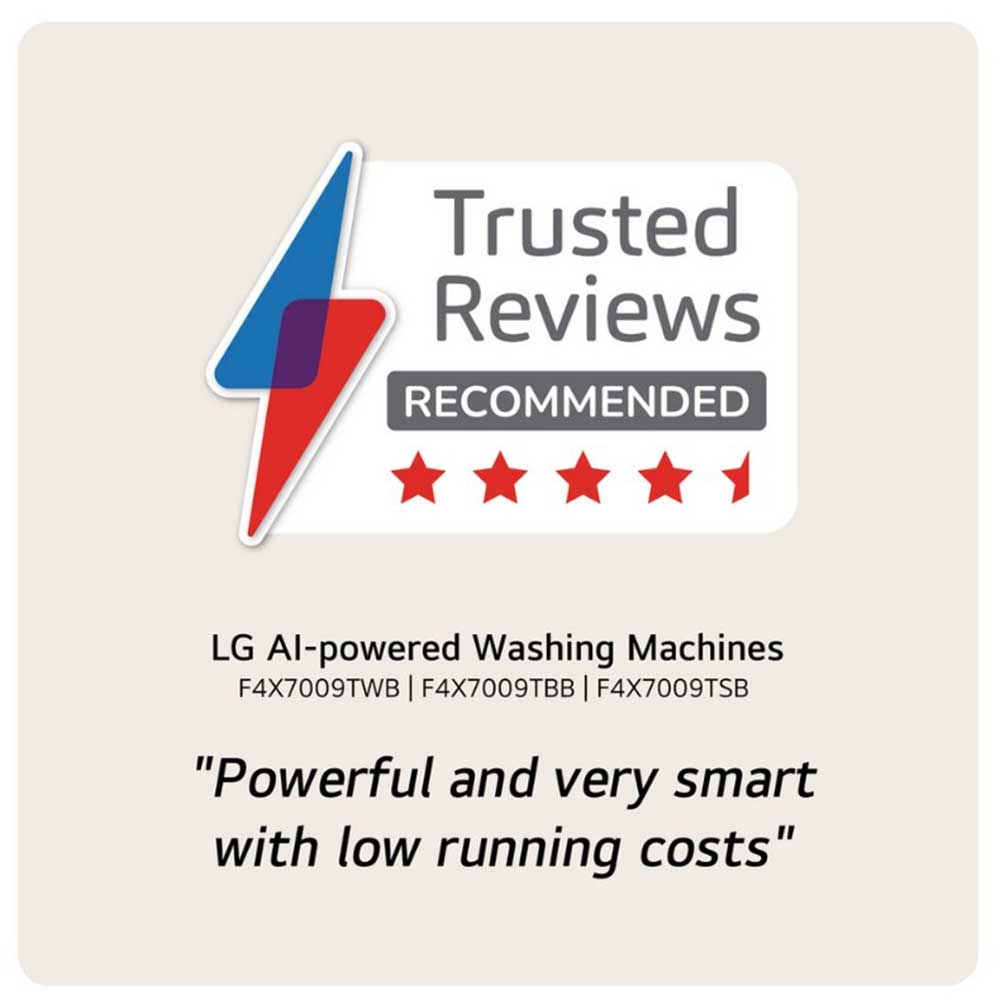 With the AI Direct Drive system, the washing machine intelligently adjusts motions based on load and fabric type, increasing fabric care by 18% and contributing to energy efficiency. Meeting current energy standards, the LG F4X7009TBB is an investment in reliable performance and improved garment hygiene, offering smart technology to simplify your laundry routine.