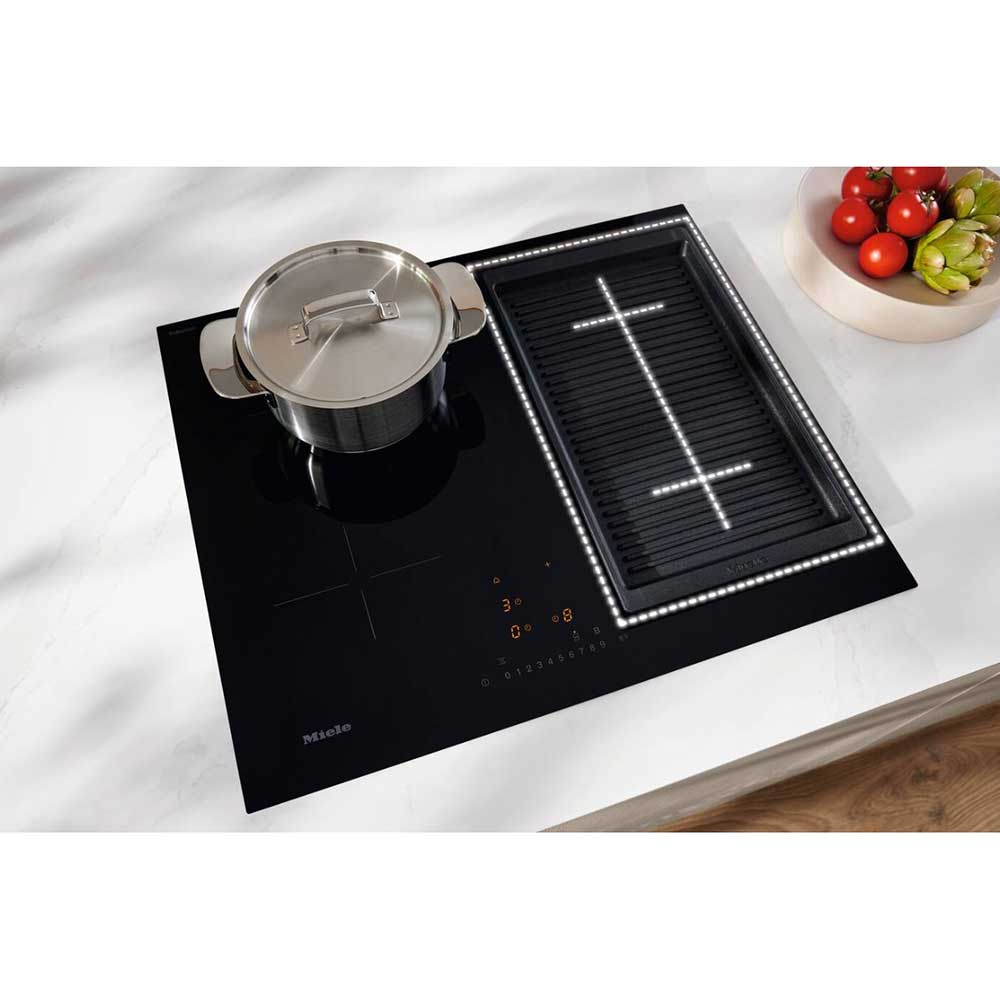 Miele’s PowerFlex technology gives you greater flexibility than standard induction hobs. Two cooking zones can be combined into one larger cooking area, allowing you to use oversized cookware such as roasting dishes, fish kettles or griddle plates.