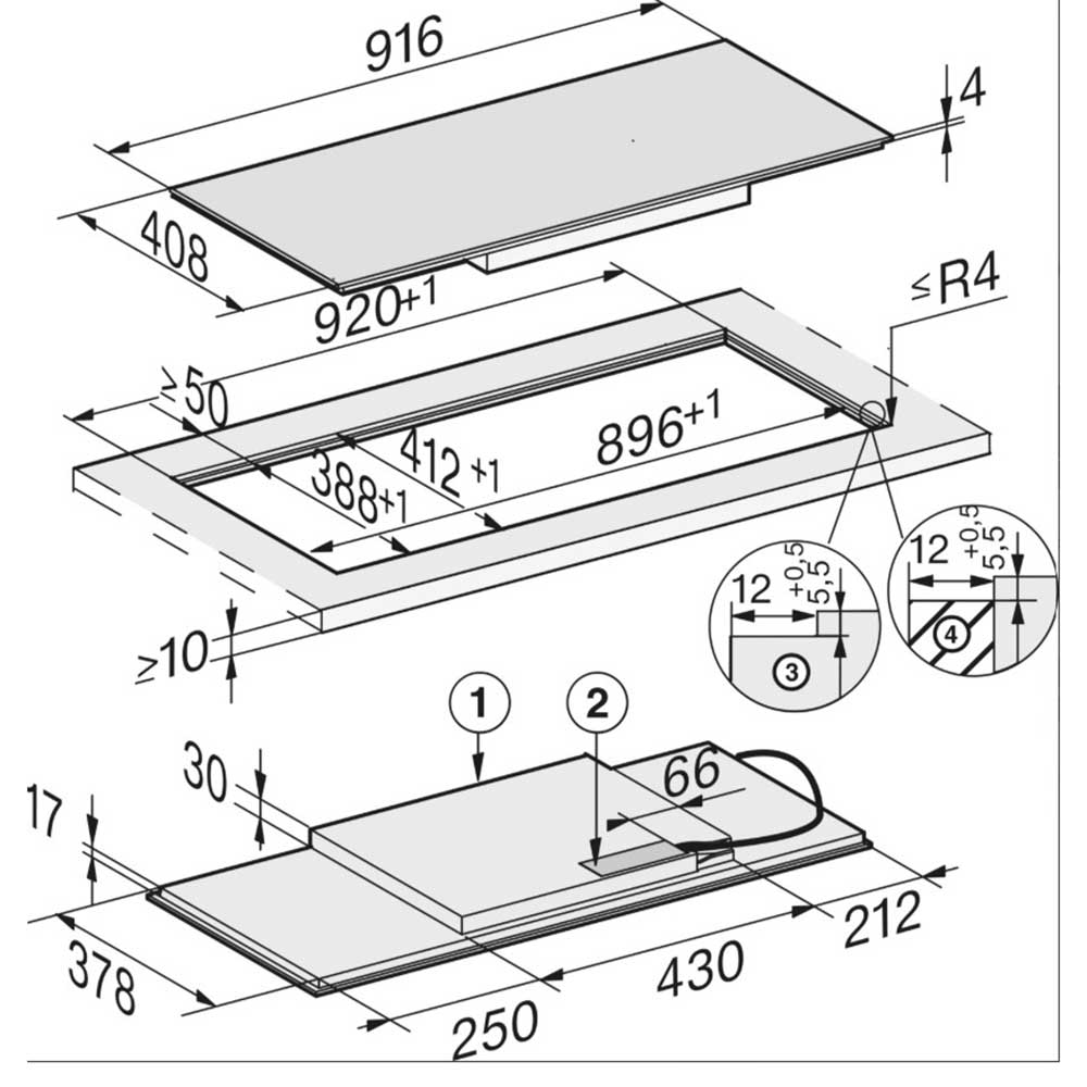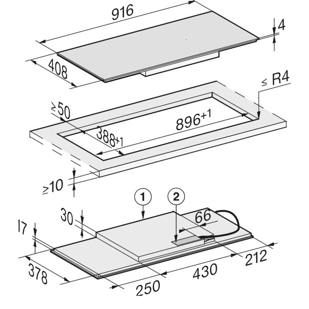 - Panoramic 92cm induction hob design