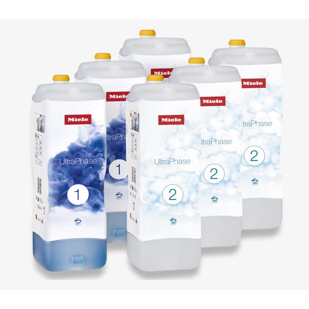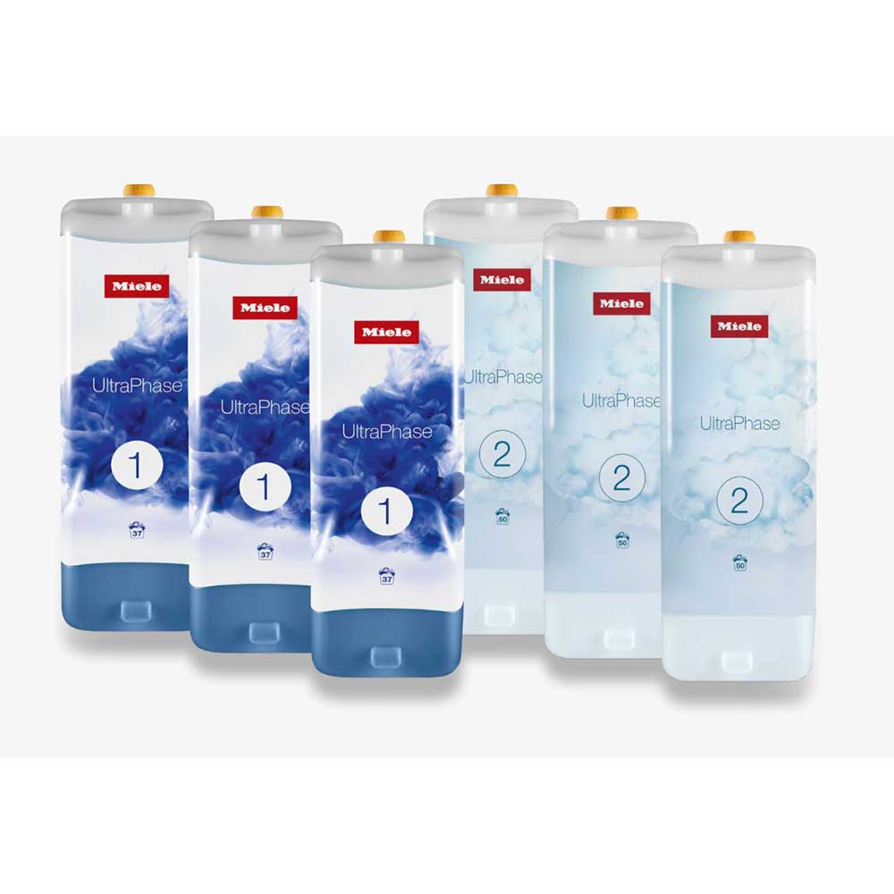 UltraPhase 1 and 2 Set of 6 TwinDos Cartridges Brand – Miele Contents 3 Ultraphase 1  Cartridges 1.4 litres each 3 Ultraphase 2 Cartridges 1.4 litres each Suitable for all W1 Machines with Twin Dos