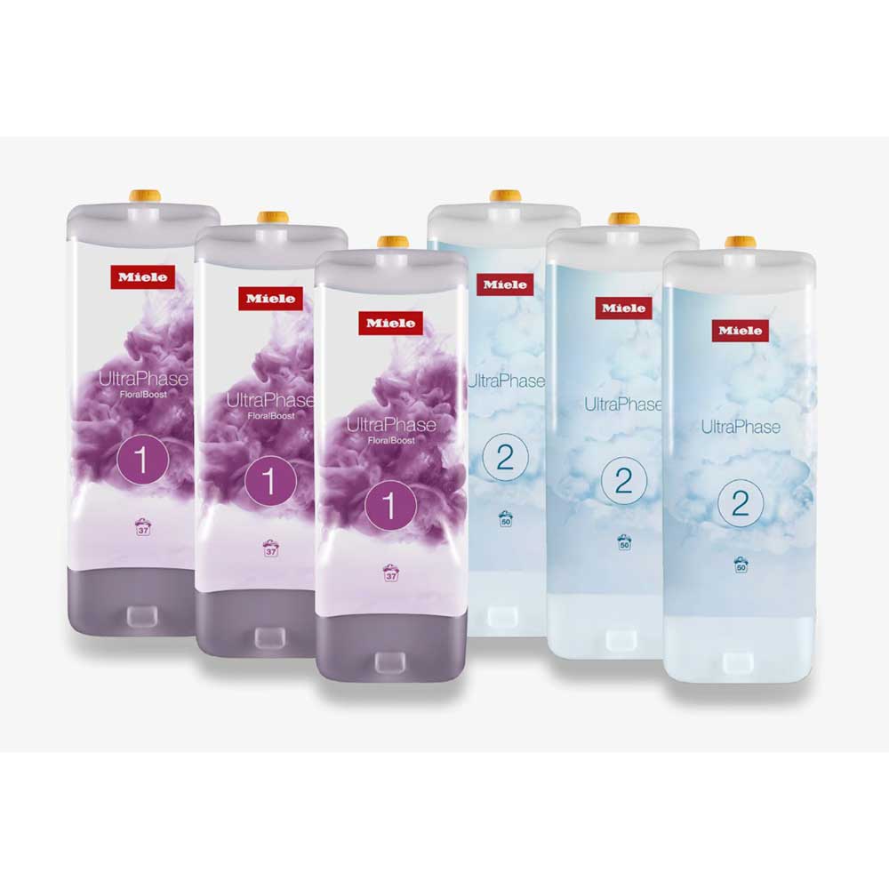 Fragrance - Floral Boost UltraPhase 1 and 2 Set of 6 TwinDos Cartridges Brand – Miele Contents 3 Ultraphase 1  Cartridges 1.4 litres each 3 Ultraphase 2 Cartridges 1.4 litres each Suitable for all W1 Machines with Twin Dos