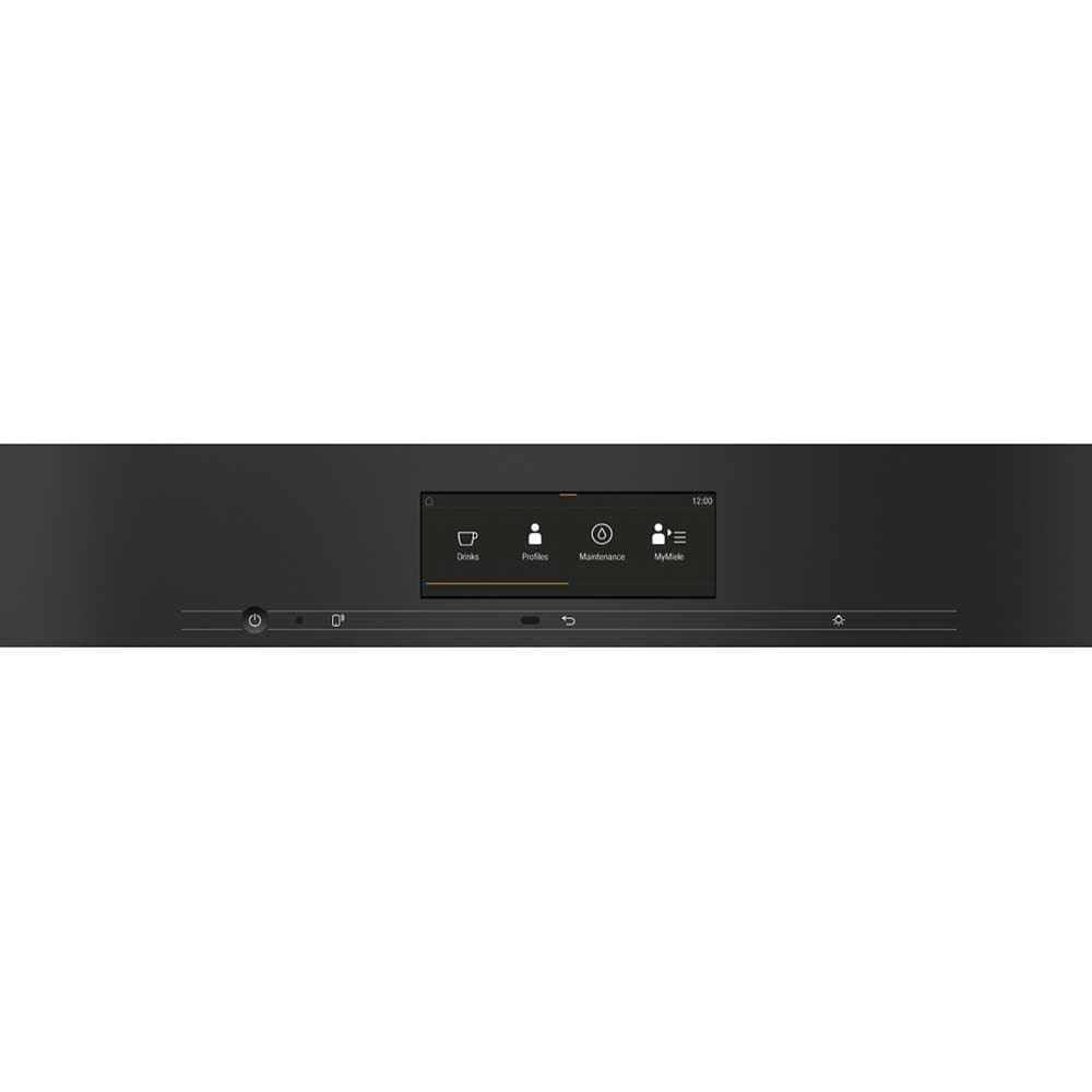 The Miele CVA7845 PureLine built-in coffee machine delivers barista-quality drinks from the comfort of your kitchen. Finished in elegant Obsidian Black glass with a CleanSteel stainless steel trim, it integrates beautifully alongside other Miele PureLine appliances while remaining easy to keep looking pristine.