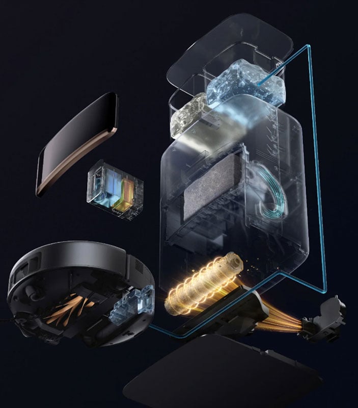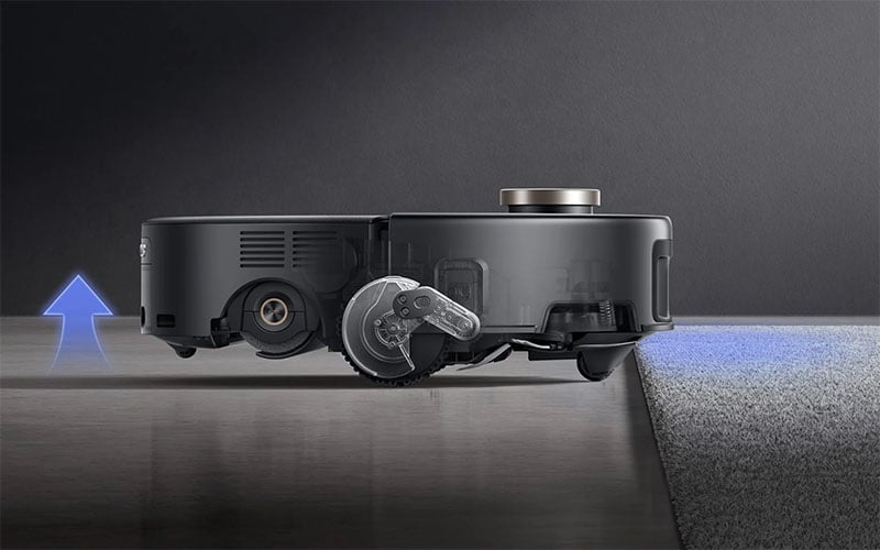 Tired of wet mops ruining your carpets? AutoShield™ Tech instantly detects carpets, retracts the mop, and deploys shields to block moisture. Unlike others that halt cleaning, Z60 Ultra Roller Complete goes furthur——it lifts the chassis for better passage and maintains full suction power and side brush rotation, ensuring dry and clean carpets in a single pass.