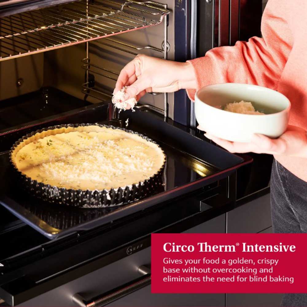 At the heart of the oven is NEFF’s clever CircoTherm® hot-air system, which circulates heat evenly throughout the cavity. That means you can roast, bake and grill across multiple shelves at once without flavours transferring — perfect for busy family meals or weekend entertaining.
