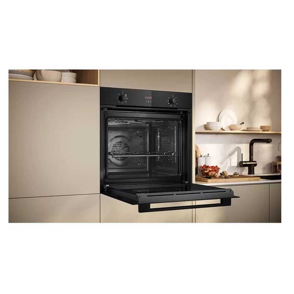 The Neff B1DCC0AK3B Built-In Single Oven presents an ideal cooking solution, designed to elevate your culinary experience. With its innovative CircoTherm technology, this oven ensures that your dishes are cooked to perfection, utilising up to three levels simultaneously for optimal heat distribution. Its sleek and modern design incorporates advanced features like five primary heating options, which include CircoTherm, top/bottom heat, Circo-roasting, full surface grill, and CircoTherm gentle, making it versatile enough for both avid cooks and those who enjoy the occasional baking session.