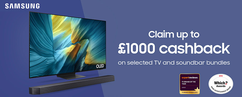 Get up to £500 cashback* when you purchase any selected Samsung TV.