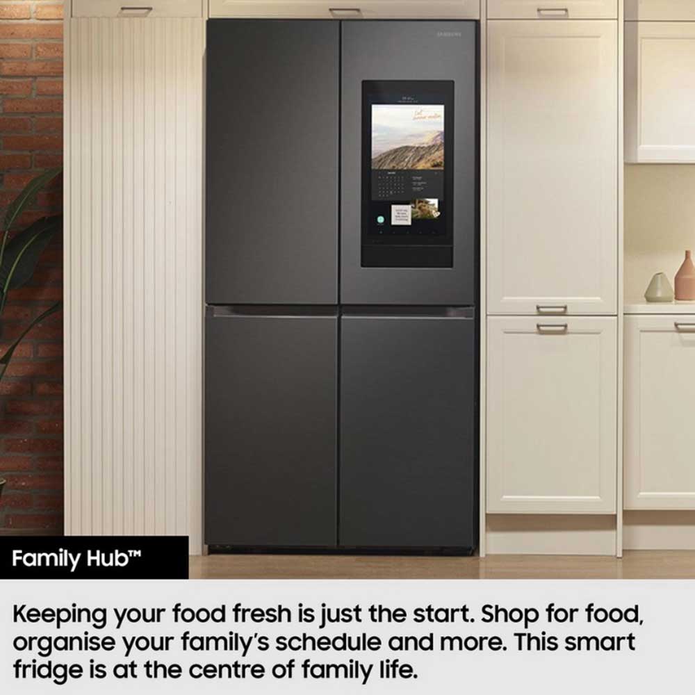 For added convenience, the fridge features voice-activated door opening, allowing hands-free access when your hands are full. Finished in sleek black, it adds a modern and premium look to contemporary kitchens while delivering the performance needed for everyday family life.