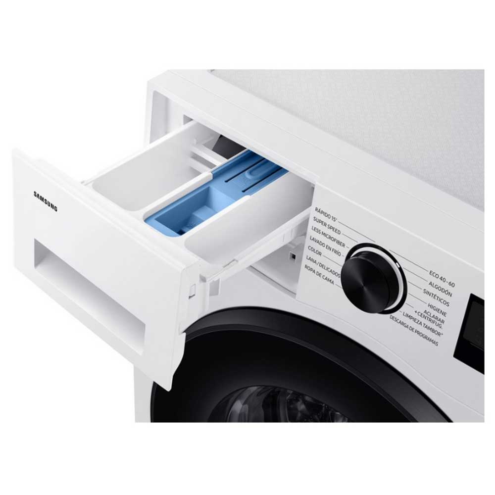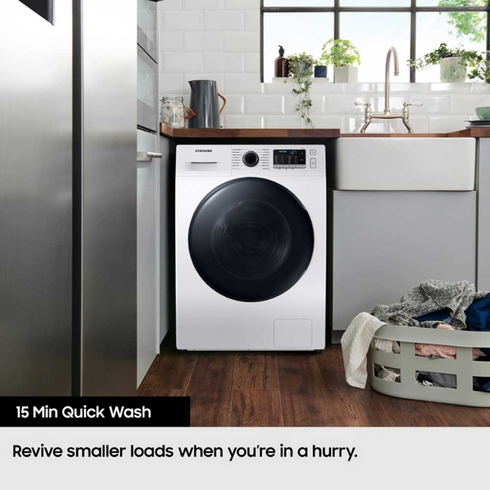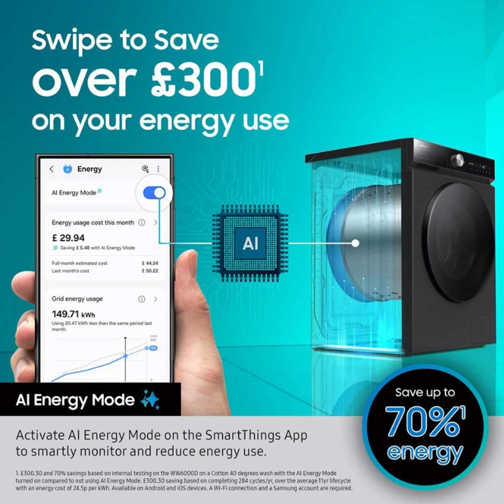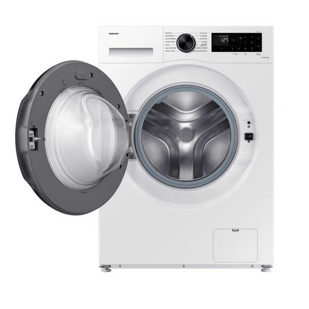 The Samsung WW11DG5B25AEEU is an advanced 11kg washing machine with a powerful 1400 spin speed, engineered to provide excellent laundry results. Its sleek white design complements any modern home, while the innovative AI Energy technology ensures optimal energy efficiency. With SpaceMax technology, this machine delivers impressive drum capacity without increasing its footprint, making it ideal for larger households.