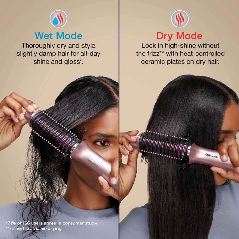 Introducing the Shark HT302UKPK Glossi 2-in-1 Hot Tool and Air Glosser Brush in a stylish pink design, a revolutionary styling tool that combines the benefits of a heated brush and an air glosser. Perfect for busy individuals seeking sleek and shiny hair, this versatile product allows you to achieve salon-quality results at home. The ergonomic design ensures comfortable handling, making it an ideal choice for daily styling and touch-ups.