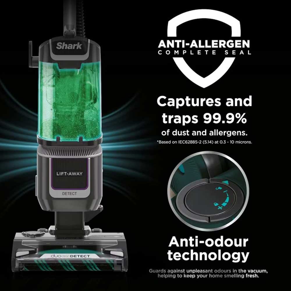 Features Reverse Clean Technology: Powerful suction both forwards and backwards Anti-Hairwrap Plus: Specially designed bristles pull hair to the centre, where the anti-wrap combs remove it Lift Away: Effortlessly switches from upright to portable mode in seconds Anti-Allergen & Odour – Traps dust, blocks smells