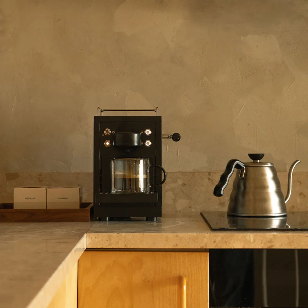 Modern Scandinavian Design – Crafted from premium stainless steel and finished in black, the Sjostrand Original is a compact pod coffee machine with sleek lines and a high-quality finish. Its minimalist design brings a timeless elegance to any kitchen, blending effortlessly with contemporary interiors.