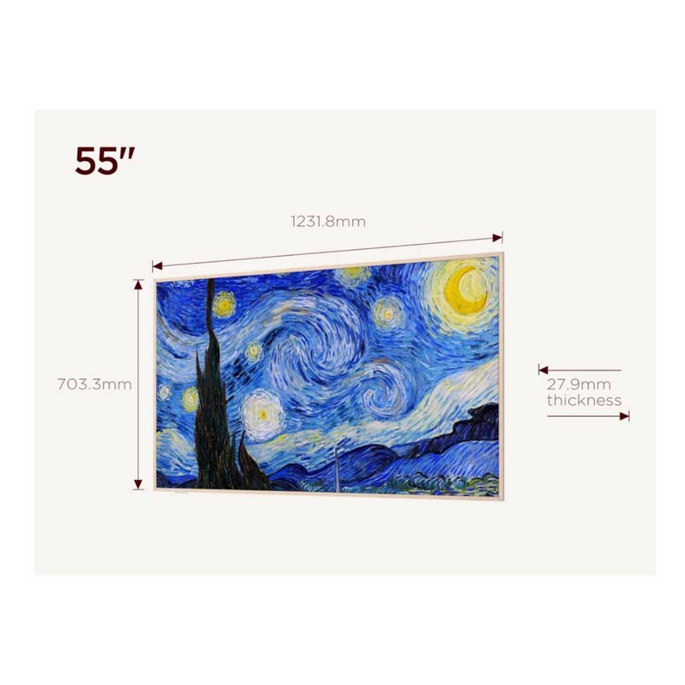 - TV transforms into a piece of wall art when not in use